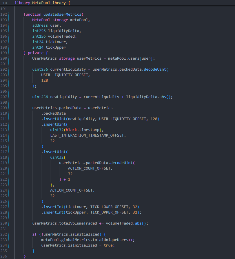 * **Gas Savings**: Replacing multiple read and write operations with batched updates using the **MetaPool Library** reduces gas per transaction, making the system scalable even for complex liquidity strategies.